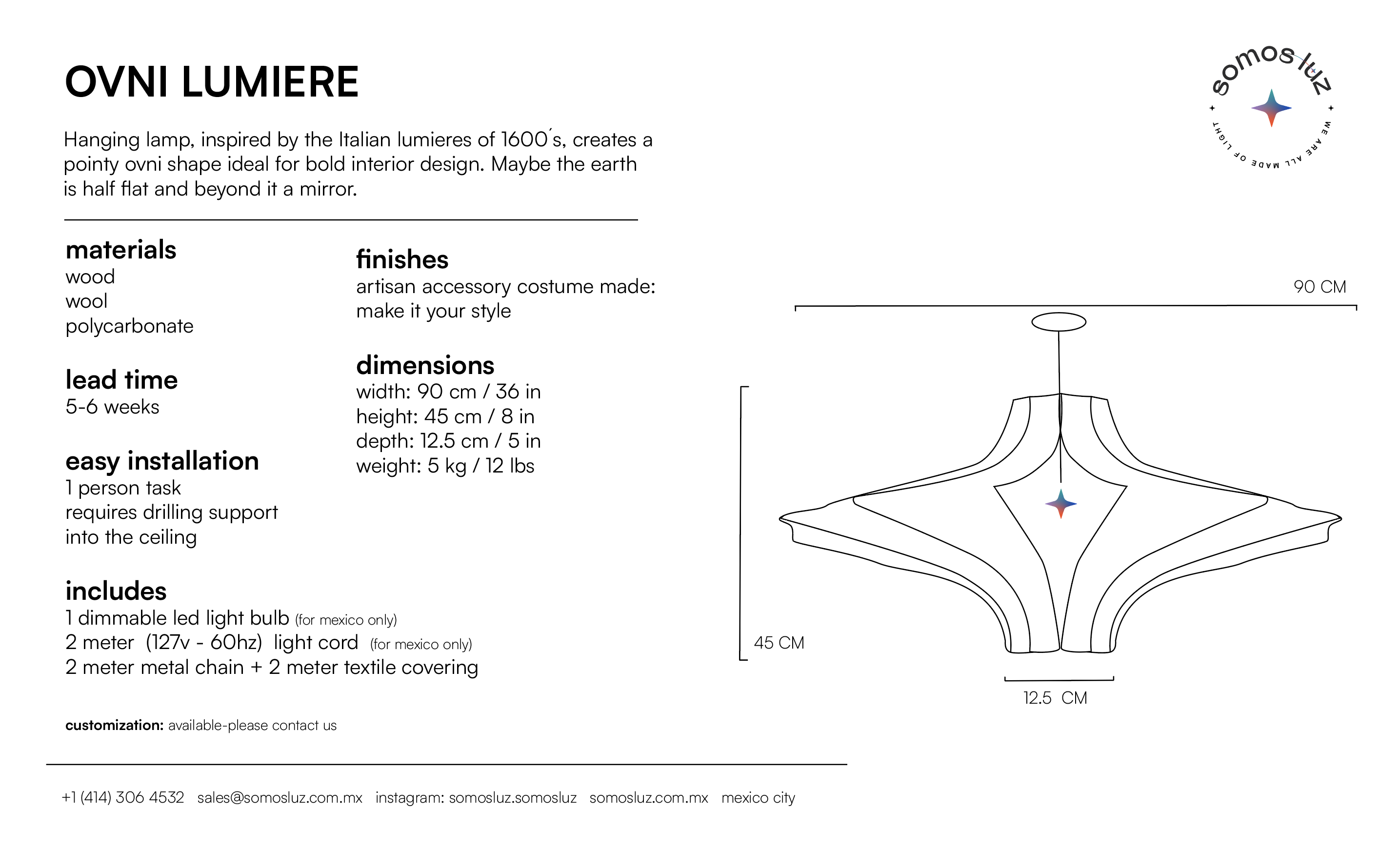 Hanging lamp, inspired by the Italian lumieres of the 1600's, creates a pointy ovni shape ideal for bold interior design. Maybe the earth is half flat and beyond it a mirror.